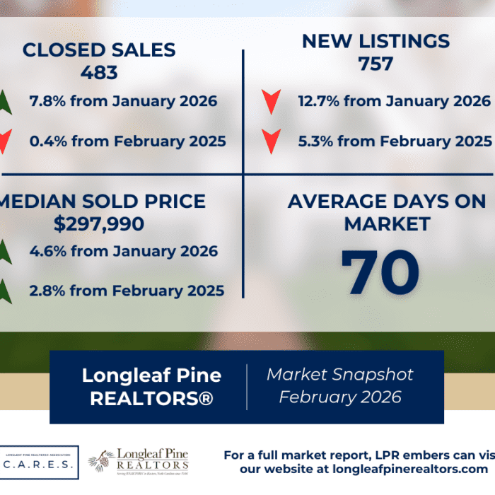 FOR IMMEDIATE RELEASE February 2026 Housing Market Update: Regional Housing Market Gains Momentum in February as Pending Sales Climb New statistics shed light on current real estate market momentum Fayetteville, NC — March 17, 2026 — The Longleaf Pine REALTORS® today released its February 2026 housing market statistics, offering insight into current real estate trends across the southeast in North Carolina. […]