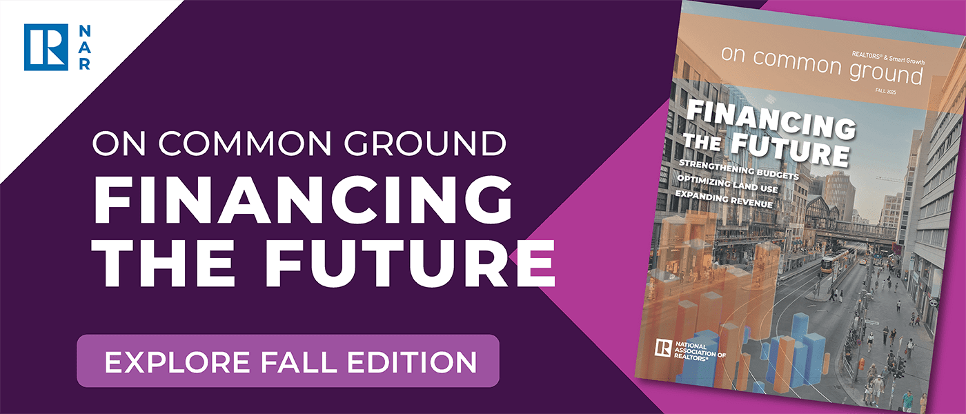 Published by the National Association of REALTORS®, On Common Ground is a powerful tool for state and local associations to engage elected officials and community leaders on critical issues like land use, housing, transportation, and Smart Growth. The latest issue of On Common Ground features several articles that align with our advocacy and policy priorities. We’re sharing one that